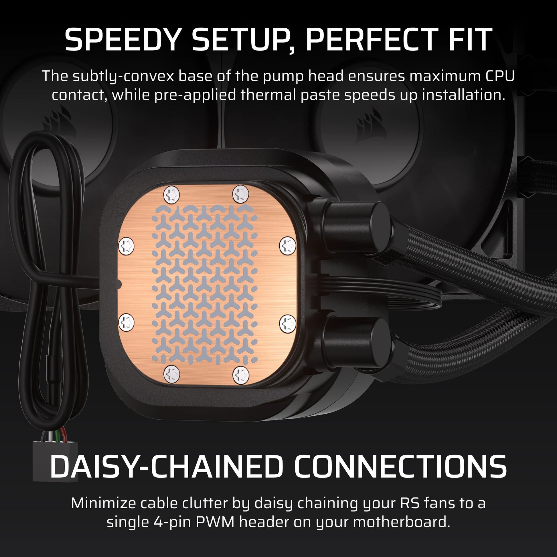 Minimize cable-clutter in your system by daisy-chaining your RS fans to a single 4-pin PWM header on your motherboard.